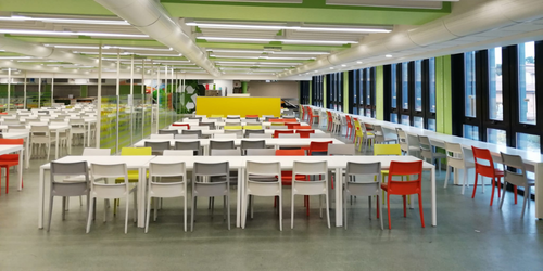 - la linea classica, con primi, secondi e contorni, su due piani, a banconi free flow (per la libera scelta dei piatti e la riduzione delle file) e uno con zona pizzeria, con forno a vista (attiva la sera);