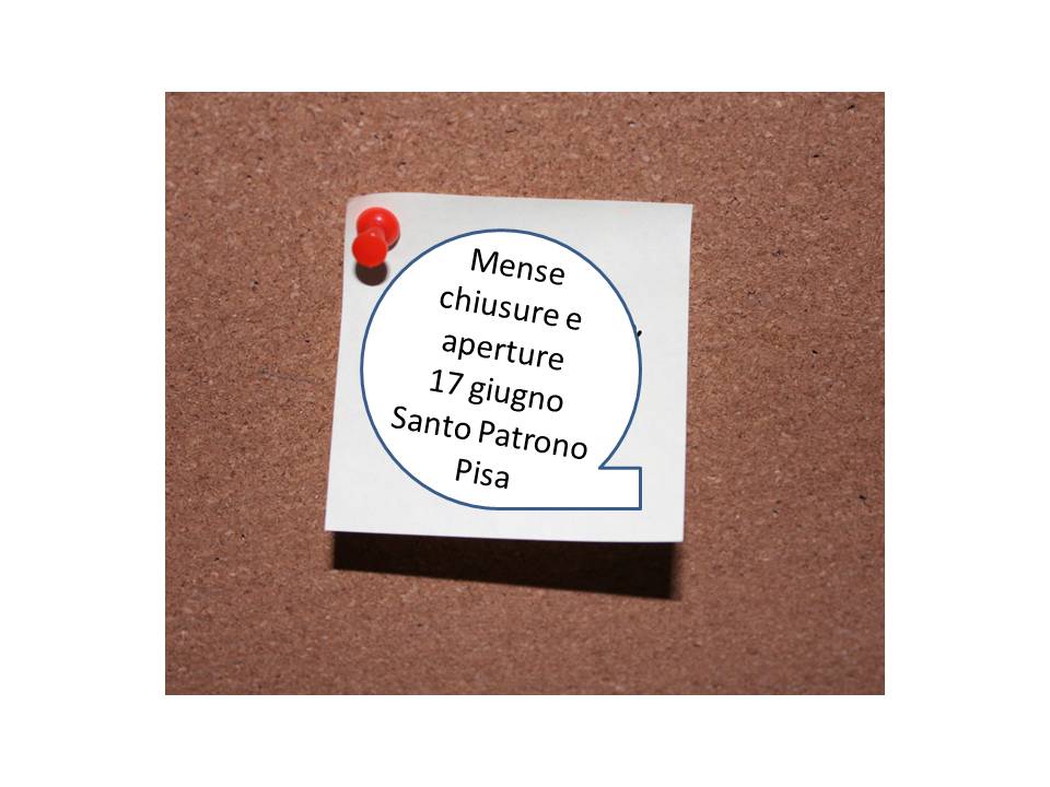 Si comunicano le chiusure e aperture delle mense di Pisa il 17 giugno 2025 in occasione della festività del Santo Patrono: